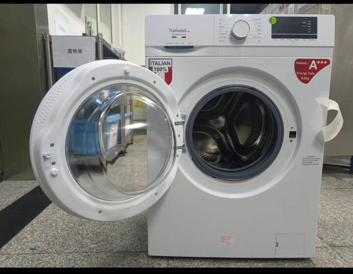 This National Line automatic washing machine features an 8kg capacity and is built with premium Italian technology for superior laundry care. It is highly energy-efficient with an A+++ rating, designed to save on electricity while delivering professional cleaning results. The unit boasts a modern white finish, a large crystal-clear door for easy loading, and a variety of wash cycles tailored for different fabric types. Reliable and durable, it comes with a full 1-year warranty, offering a perfect blend of high-end performance and long-term value for your household.